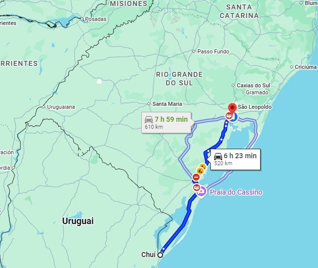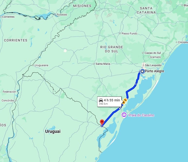 Saindo de Porto Alegre, sรฃo aproximadamente 6h30min de viagem para chegar no Chuรญ.